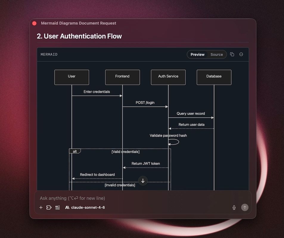 • New: Added Mermaid preview support in the renderer.